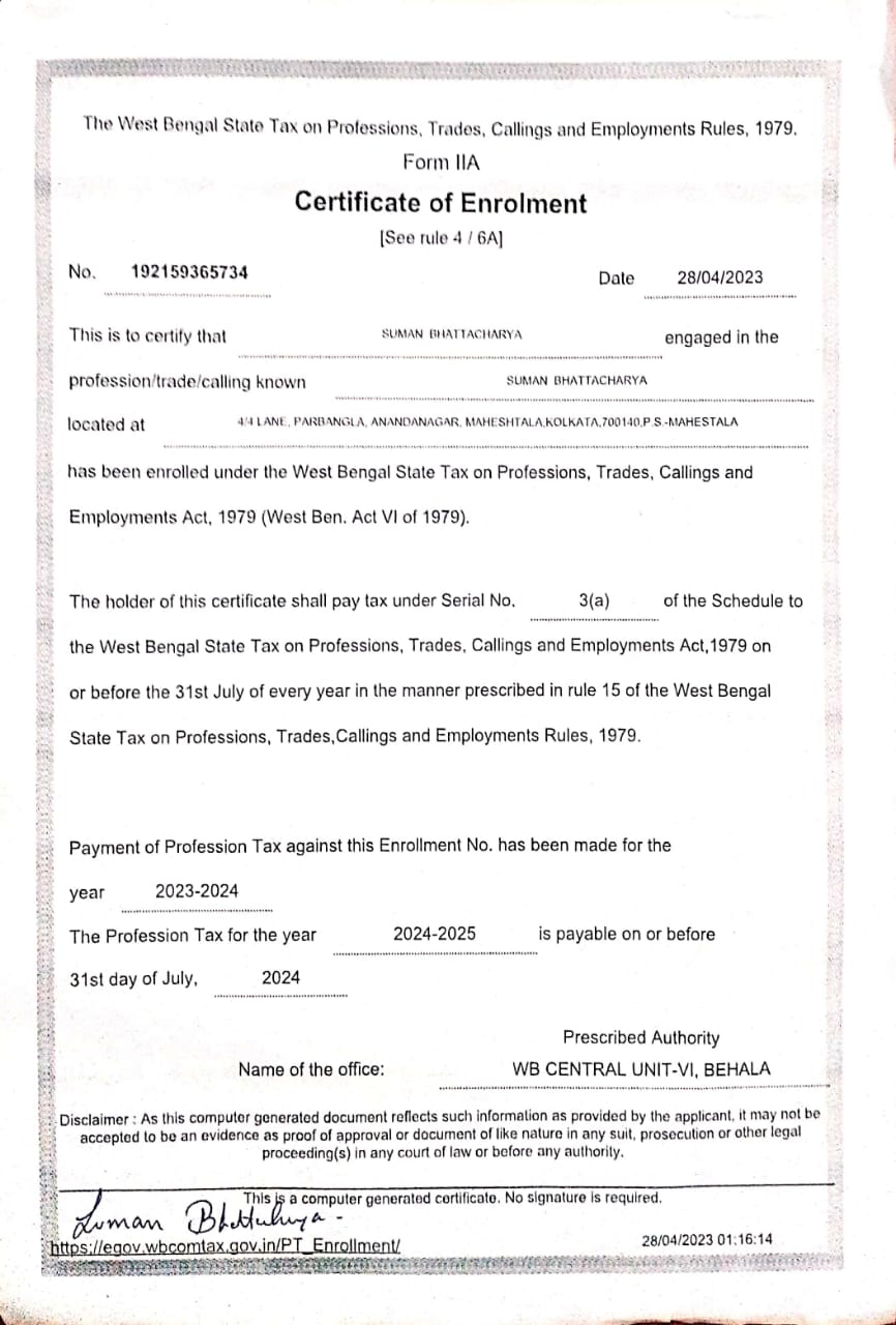 Father's Name: DIPAK BHATTACHARYA