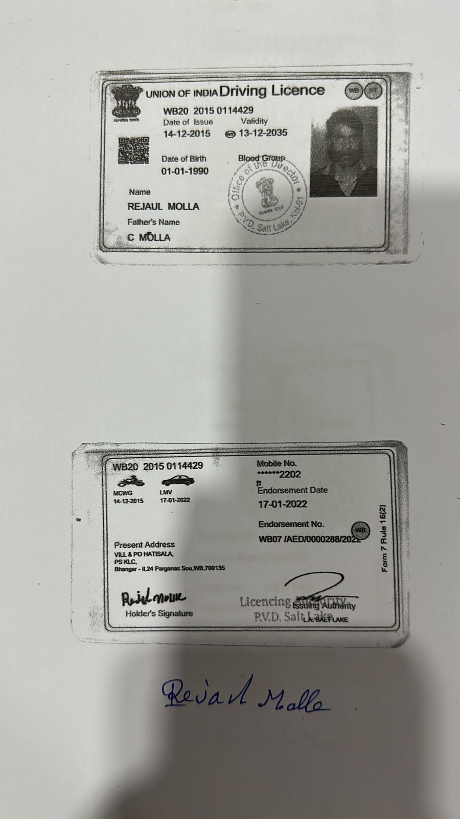 Father's Name: CHHAMAD MOLLA