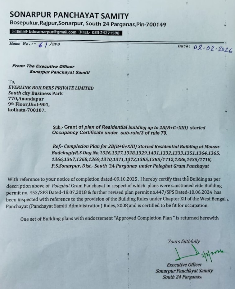 Partial COMPLETION CERTIFICATE of Block 2A 2C & 2E.pdf Partial OCCUPANCY certificate of Bl 2D 24 09 2025 (5).pdf Partial OCCUPANCY certificate of Block 2B.jpeg |